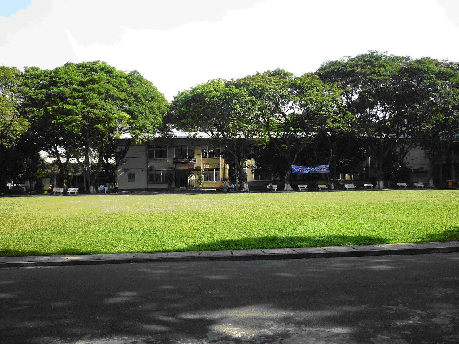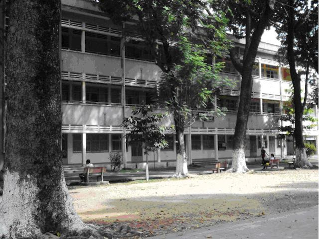 khoa HÓA nằm mơ mộng sau hàng cây xanh, phía trước khoa là sân đá banh, sân này từng là nơi tung hoành của anh Trần Vũ (Bách khoa Trung Cấp) - cựu huấn luyện viên đội Quảng Nam Đà Nẵng - |